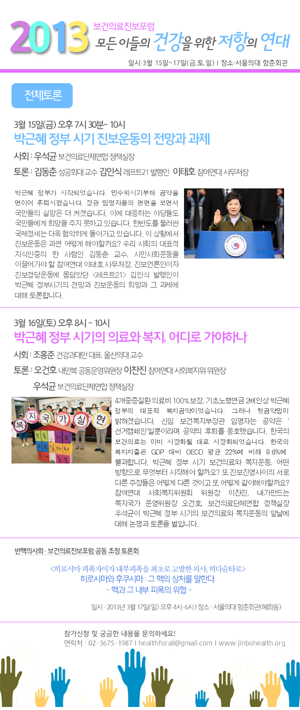 박근혜 정부 시기의 의료와 복지, 어디로 가야하나_3월 16일(토) 오후 8시 – 10시