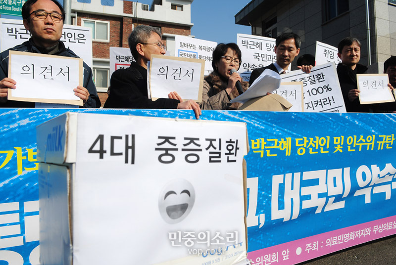 이에 가입자대표로 건정심 회의에 참가하고 있는 민주노총을 비롯한 무상의료운동본부는 4대중증질환 국가보장 공약에 3대 비급여가 포함되어 있지 않다는 말 자체가 사실이 아닐뿐더러, 이를 덮고자 더 큰 거짓말을 지어내고 있는 박근혜정부와 건정심에 참여하는 복지부 태도에 매우 우려하며 다음과 같은 몇 가지 사실을 재확인하고자 한다.