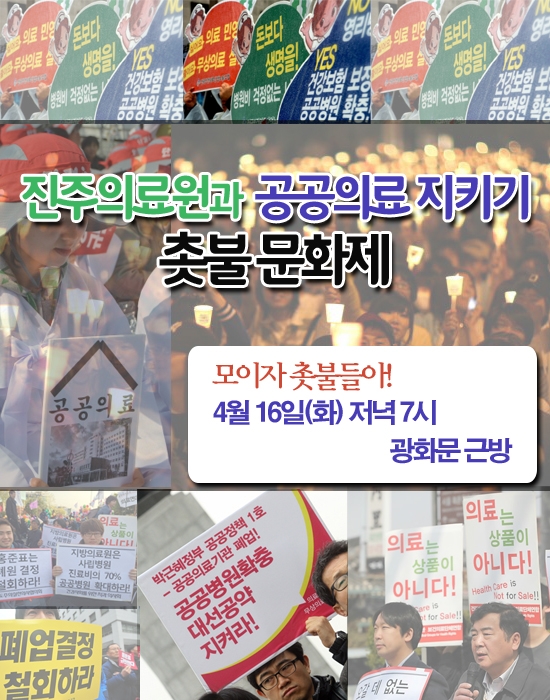 그래서 나는 호소한다. 진주의료원과 공공 의료를 지키기 위해 16일 오후 7시 광화문에 촛불로 모이자.