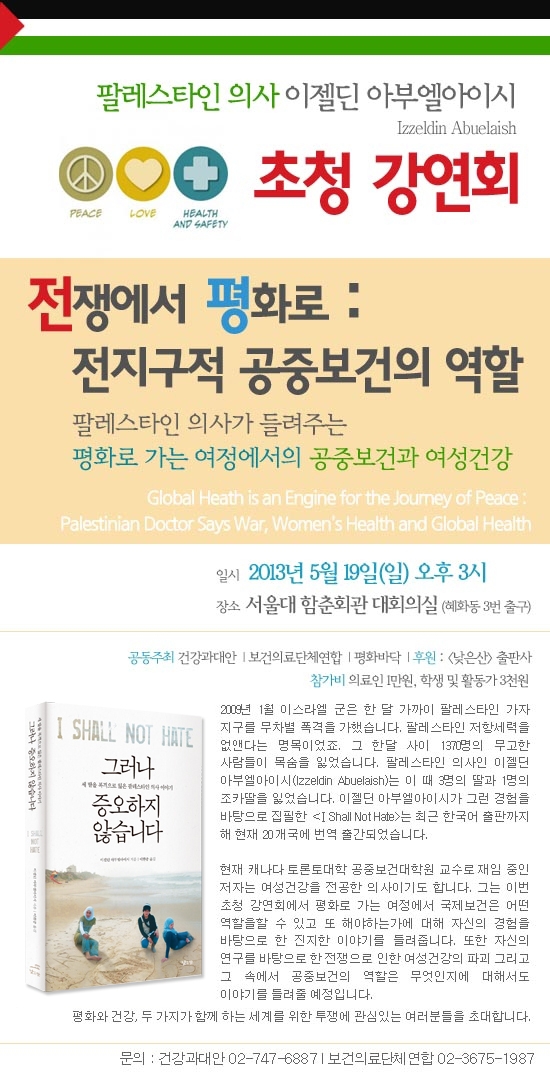 - 팔레스타인 의사가 들려주는 평화로 가는 여정에서의 공중보건과 여성건강 -