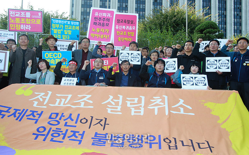 교사들이 노동조합을 결성하는 것은 민주주의 국가에서는 너무도 당연한 권리다. 또한 노동조합이 해고자와 실직자를 자신의 조합원으로 포함시키는 것은 전적으로 노동조합의 권리다. UN의 국제노동기구(ILO)의 긴급개입, 심지어 경제개발협력기구(OECD) 등에서 거듭 정부의 규약시정 명령이 단결권과 결사의 자유를 침해하는 것이라는 입장을 표명한 것은 이를 단적으로 보여준다. 그럼에도 불구하고 박근혜 정부는 결국 전교조를 법외노조화하고야 말았다. 전교조 법외노조화는 한국 민주주의의 수준이 얼마나 후퇴한가를 단적으로 보여주는 것이며 한마디로 국제적 망신이다.