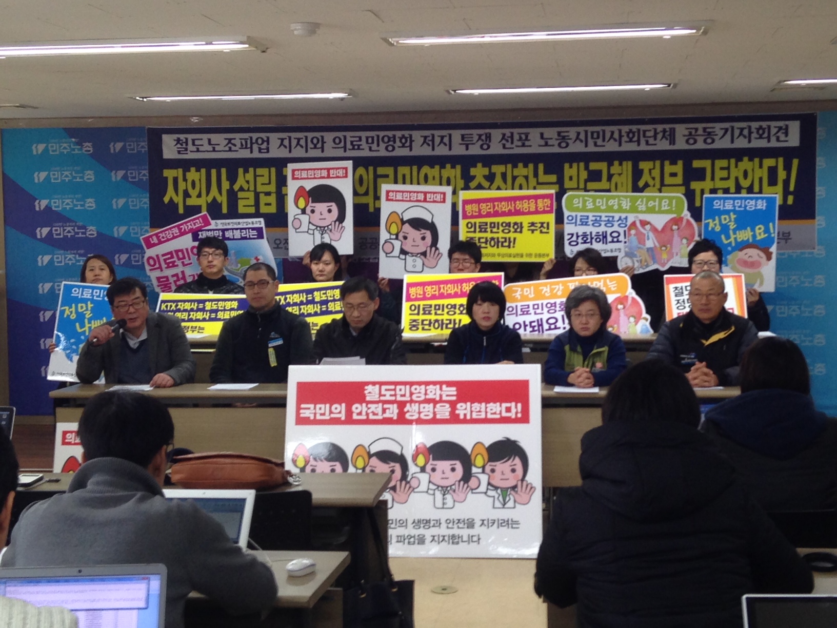 따라서 이러한 민영화에 맞서 투쟁하고 있는 철도노동자들의 파업은 정당하며 이를 불법으로 몰고 있는 박근혜 정부의 노동자 탄압이야 말로 불법적이고 그 정당성이 없다. 우리는 철도노동자들의 파업을 지지함을 분명히 밝히고 박근혜정부가 당장 철도민영화를 중단할 것을 촉구한다. 또한 우리는 박근혜 정부가 보건의료투자대책으로 발표된 의료민영화, 의료영리화 정책 추진을 즉각 중단할 것을 엄중히 요구한다. 우리 노동시민사회단체는 단결된 투쟁으로 철도․ 의료민영화를 반드시 저지할 것이다(끝)