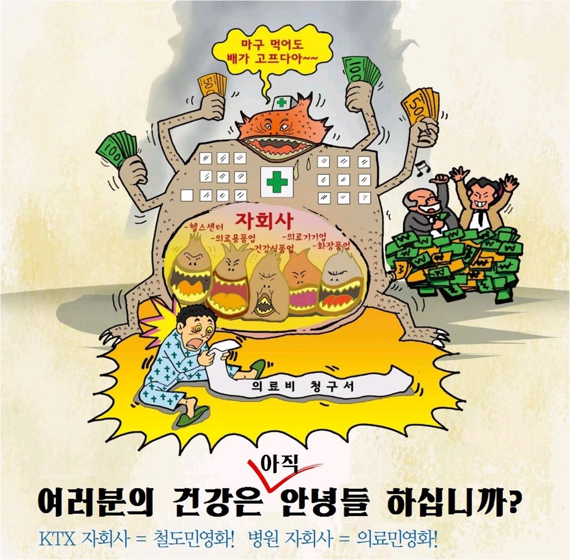 △영리 자회사는 꼬리가 몸통을 흔드는 격으로 사실상 병원의 영리 추구를 부추길 것이다. (크게 보기) ⓒ레프트21