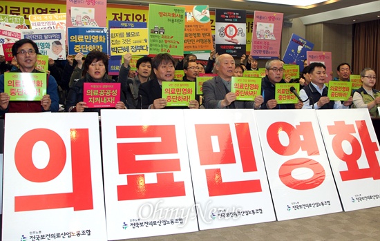 박근혜 정부의 의료영리화 정책이 가속화되고 있는 가운데, 범 노동·시민사회가 ‘의료민영화, 영리화 저지와 의료공공성 강화를 위한 범국민운동본부(의료민영화저지 범국본)’를 출범했다. 이들은 의료민영화 저지를 위한 ‘5대 국민행동’을 발표하고, 100만 서명운동 및 민영화 저지 입법 등을 진행해 나간다는 계획이다.