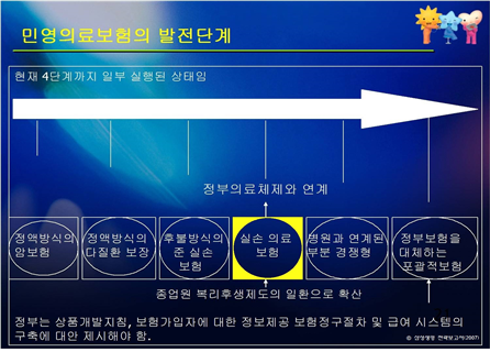 국민건강보험의 ‘정상화’는 바로 ‘보장성 강화’입니다. 국민들이 병원에 갔을 때 치료비를 보장해 주는 것입니다. 그런데 우리나라 건강보험은 보장률이 55퍼센트 밖에 되지 않습니다. 그래서 병원에 가면 ‘부대비용’으로 내야 하는 돈이 많습니다. 선택진료비, 상급병실료, 간병비 그리고 비보험 치료비는 다 병원에 직접 또 내야 합니다. 그래서 경제가 안 좋아지자 서민들은 병원에도 안가고 끙끙 참았습니다. 그래서 건강보험금이 2년 동안 9조원이나 남았습니다. 서민들이 건강보험 외 치료 부대비용 때문에 병원 안 가서 남은 돈입니다.