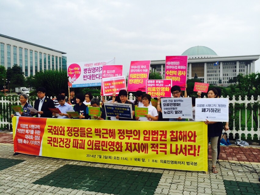 국회의 입법권 침해! 건강권 파괴! 의료민영화 중단을 위한 실질적 행동을 촉구한다.