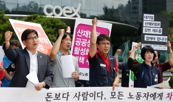 또한 재해 발생 정도에 따라 산재보험 요율을 최대 50%까지 감면·인상할 수 있도록 하는 ‘개별실적요율제’는 기업들이 산재사고를 은폐하도록 부추기는 역할을 해왔다. 그 결과 최근 5년간 25명의 노동자가 사망한 현대제철 당진공장은 2012년 보험료가 전년에 견줘 27억4900만원이 할인되는 혜택을 받았고, 2014년 3월 현재 73명의 직업병 사망자가 발생한 삼성전자는 ‘무재해 사업장’으로 지정되어 20개월간 약 300억 원의 산재보험료를 감면받는 어처구니없는 일이 발생하는 것이다.