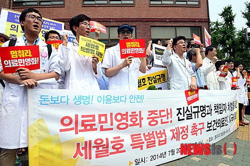 넷째 우리는 의료민영화의 또다른 모습을 세월호 참사에서 보고 있다. 규제완화와 민영화가 만든 이 거대한 참사 앞에서 유가족들과 국민들은 말할 수 없는 고통을 겪고 있다. 생명과 건강이 제대로 지켜지기 위해서는 의료 시스템만으로는 부족하다. 사회 전반이 돈보다 생명, 이윤보다 안전을 우선하는 사회로 바뀌어야 한다. 보다 정의롭고 민주적인 사회가 되어야 그 사회의 구성원이 건강해질 수 있다. 세월호 참사에 대한 제대로 된 진상규명과 재발방지대책은 우리 사회가 건강하고 안전한 사회로 가는데 있어 반드시 해결해야 할 과제이며 시대적 책무다. 그러기 위해서는 세월호 특별위원회에 수사권과 기소권을 부여해야 한다. 제대로 된 조사와 진상 규명이 이루어질 수 있다. 이는 억울한 희생자들의 원혼을 달래는 유일한 길이기도 하다.