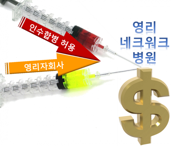박근혜 정부는 의료민영화에 반대하는 200만 국민들의 서명에도 불구하고 지난 9월 부대사업 목적 영리자회사를 허용하였다. 그리고 이제 병원 매각 및 인수합병까지 허용하여, 투기자본조차도 마구잡이로 투자하는 영리병원 체인이 지배하는 미국식 의료시장으로 한국 의료체계를 바꾸려 한다. 영리자회사 허용이 한국에서 병원의 비영리성을 훼손한 것이었다면, 병원 인수합병 조치는 그 마침표를 찍을 정책이라 부를 만하다.