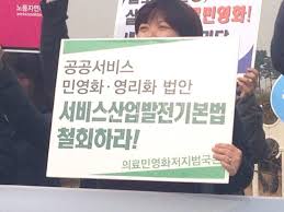 이는 박근혜 정부의 민영화와 복지 긴축 의지가 상징되어 있는 법안이다. 사회 복지의 축소는 사람들의 삶과 건강을 파괴하는 것이며, 다른 영역에서의 민영화와 긴축은 보건의료 부문의 민영화를 촉진한다는 점에서도 우리는 이를 반대하지 않을 수 없다. 국회는 서비스법은 법안 자체를 즉각 폐기하여야 한다.