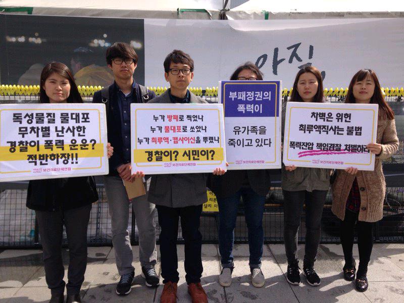 세월호 희생자들을 추모하고 진실을 인양하라고 외치고 있는 다수의 시민과 유가족들에게 가해진 경찰 폭력은 어떠한 형태로든 용납될 수 없다. 게다가 아이들과 노약자가 포함된 무장하지 않은 평범한 시민들에게 무차별적으로 분사되고 있는 최루액과 캡사이신은 사용은 중단되어야 한다.