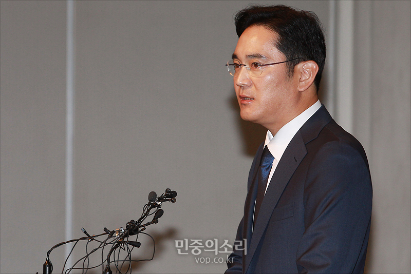 이재용 삼성전자 부회장이 23일 서울 서초구 삼성사옥 다목적홀에서 삼성병원발 메르스 사태와 관련해 대국민 사과문을 발표하고 있다.