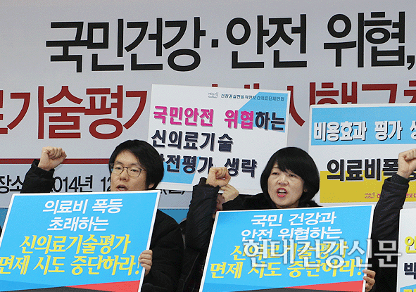 의료기기업계의 이익을 위해 비급여 검사확대, 환자를 대상으로 한 무작위 ‘실험’을 하겠다는 ‘신의료기술평가 유예 조치’ 철회하라!