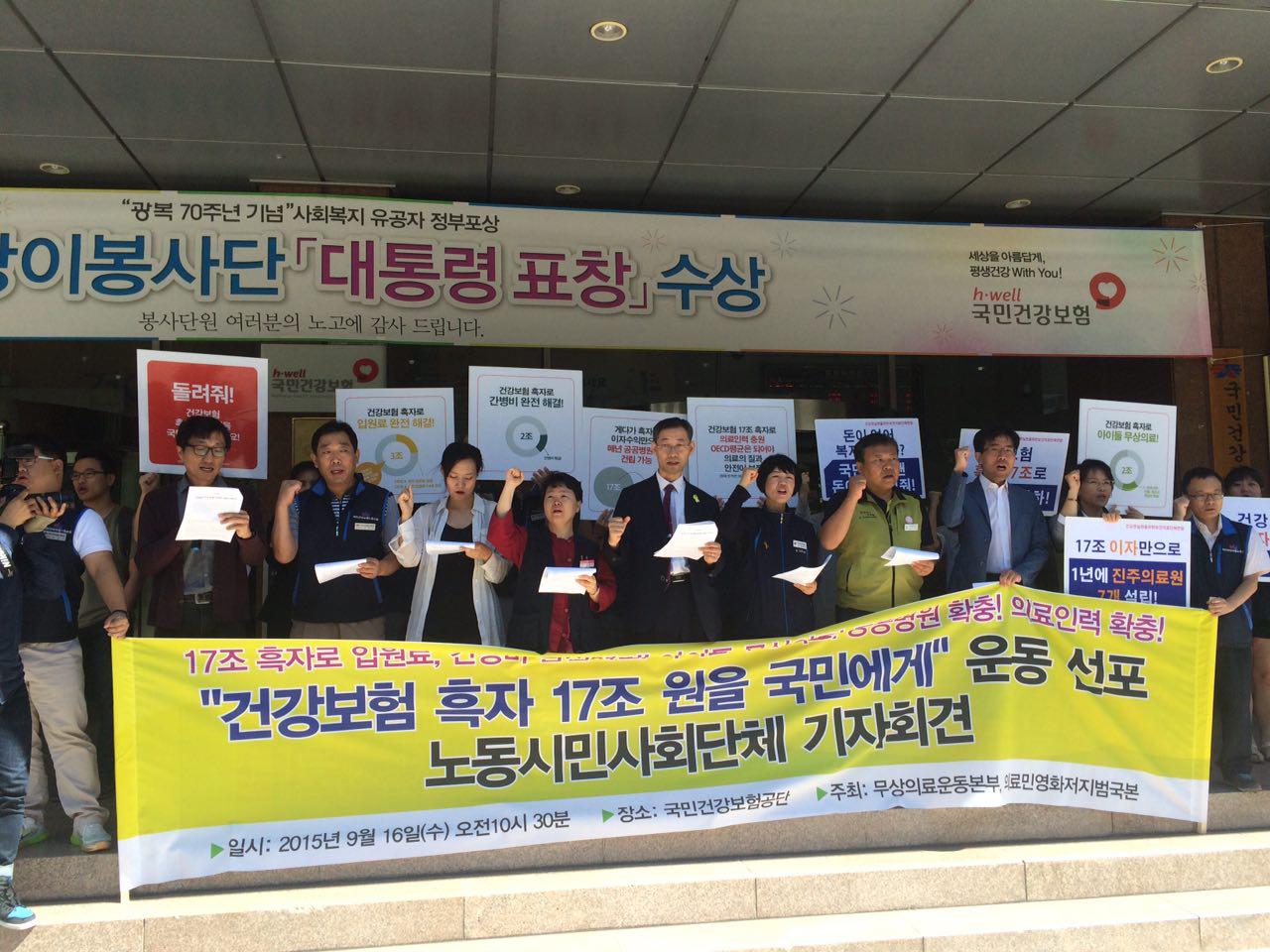 6. 이에 우리는 오늘부로 ‘건강보험 흑자 17조 원을 국민에게 운동(줄여서 흑자국민에게운동)’을 전개합니다.
