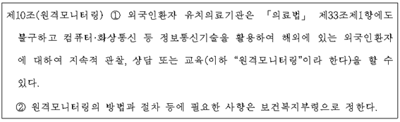 그림9. [의료 해외진출 및 외국인환자 유치 지원에 관한 법률안] 원격모니터링 허용
