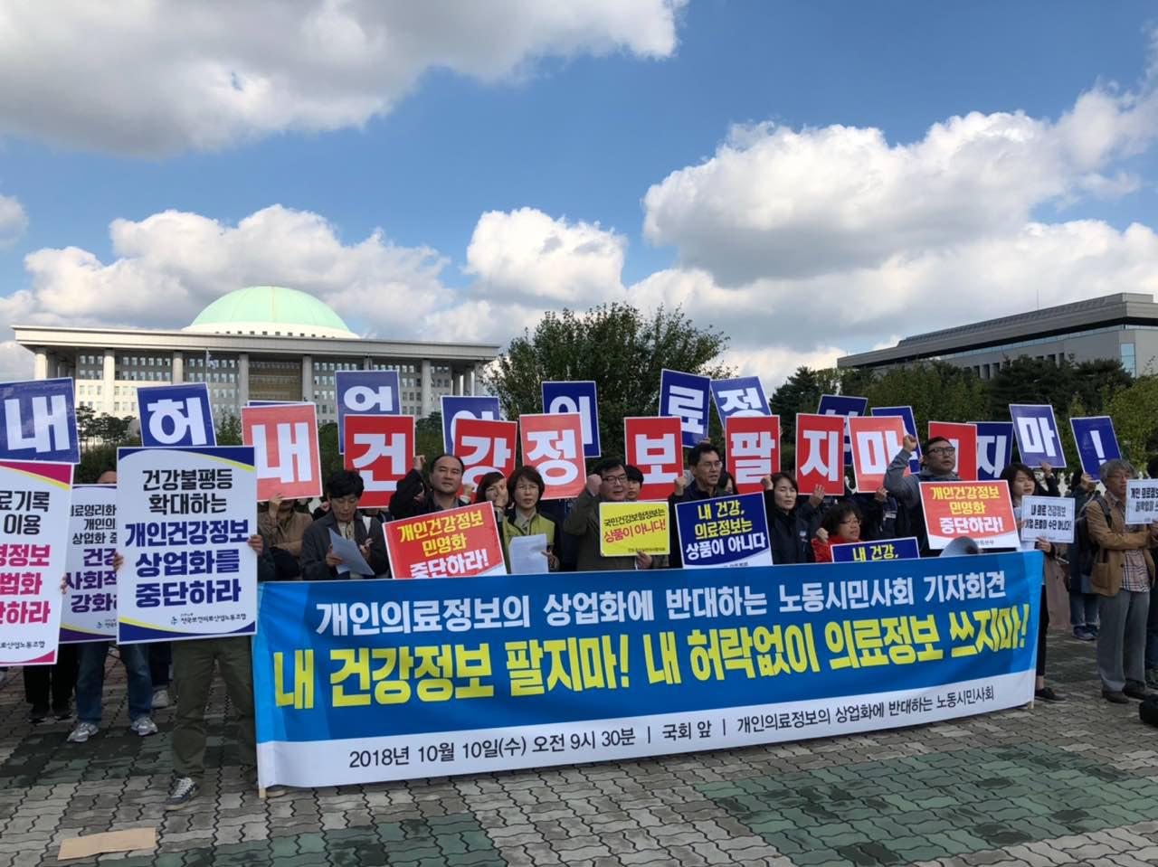 우리는 오늘 기자회견을 시작으로 모든 개인, 시민들과 함께 “내 건강정보 팔지마”, “내 허락 없이 내 의료정보 쓰지마” 라는 명확한 슬로건으로 서명운동을 벌여나갈 것이다. 병의원 약국, 그리고 학교, 거리 등 오프라인 공간과 온라인 공간(http://noselldata.jinbo.net)을 통해 개인의료정보 규제 완화를 막고 개인정보보호법 강화를 위한 입법투쟁을 벌여나갈 것이다.