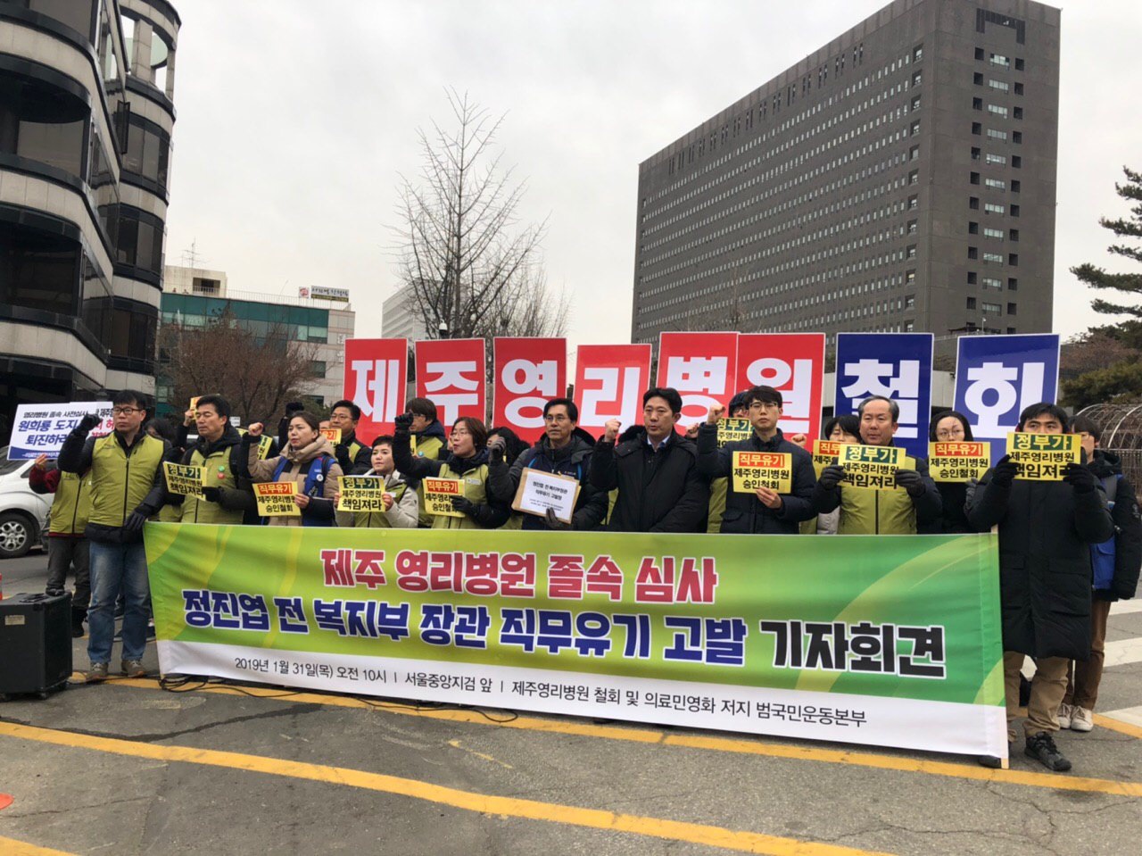 영리병원 저지 범국민운동본부는 정진엽 전 장관의 고발을 시작으로 2월 1일 제주지검 앞에서 원희룡 도지사를 직무유기로 고발할 예정이다. 우리는 또한 정보공개청구 소송을 공식적으로 제기, 중국녹지기업의 ‘영업비밀’이라며 공개를 거부했던 제주 영리병원 사업계획서에 대한 조건 없는 공개 및 국민의 알 권리 보장, 박근혜 정부 내 오고간 영리병원 사업계획서 승인·심의·허가 전 과정을 명명백백하게 따져 묻고, 해당 당사자들에 대한 법제도적 책임을 물을 것이다.