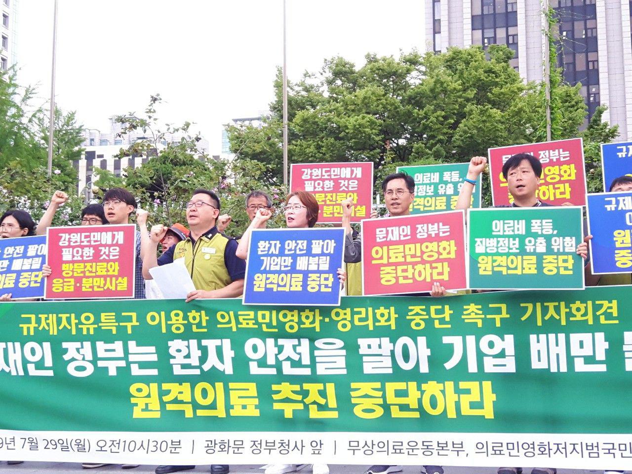 - 의료기기업·통신기업·대형병원 배불리기, 개인정보 유출위험 원격의료 추진 멈춰라