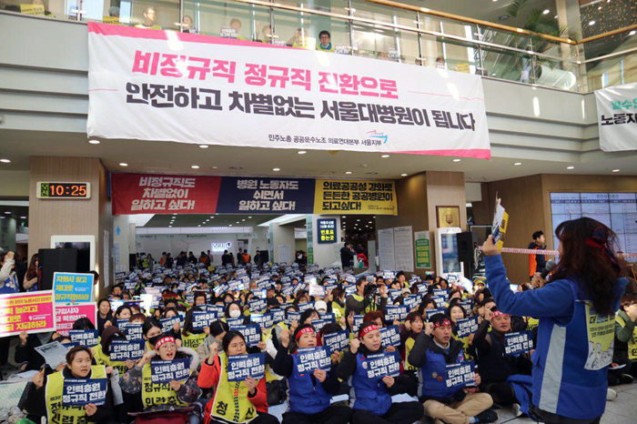 지난 3일 서울대병원 노사가 합의함으로써 서울대병원 파견·용역 노동자 614명이 서울대병원에 직접고용될 길이 열렸다. 향후 보라매병원 파견·용역 노동자까지 포함하면 800여명에 가까운 간접고용 노동자들이 직접고용될 것으로 보인다.