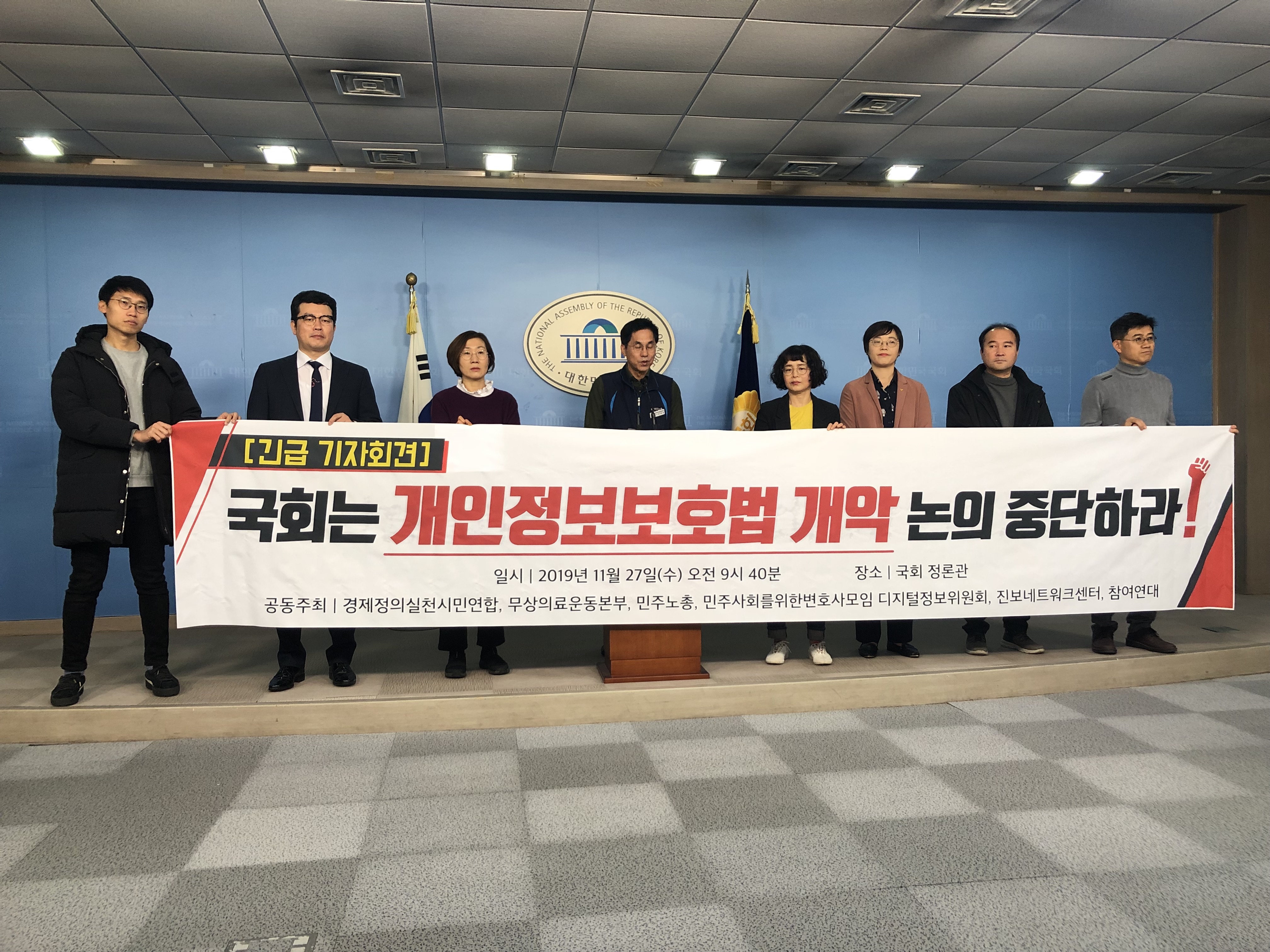 국회에 다시 한번 호소한다. 이렇게 시민사회의 목소리를 무시하고 개인정보 3법을 강행한다면, 국민들의 강한 반발에 부딪힐 수 밖에 없다. 계속 경고했듯이, 개인정보보호에 대한 신뢰없는 4차 산업혁명은 신기루에 불과하다. 최소한 다양한 의견들이 토론되고 합의점을 찾아나갈 수 있는 공간과 시간이 필요하다. 개인정보보호법의 성급한 개악을 중단할 것을 촉구한다!
