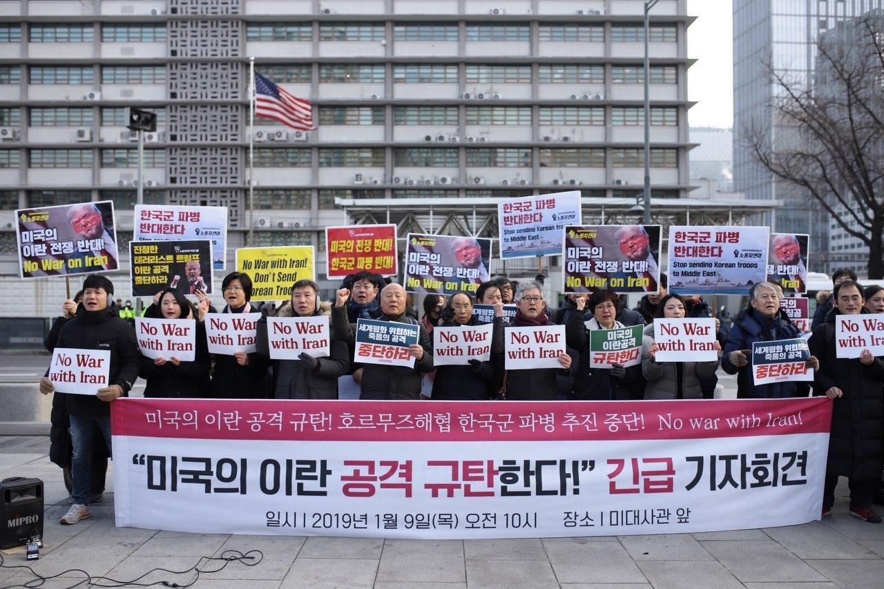 미국의 전쟁 도발을 지원하라고 한국군을 보내서는 안 된다. 더군다나 호르무즈해협 파병은 이미 그곳에 파병된 우리 군인들과 국내외 우리 한국민들을 더욱 위험에 빠뜨릴 것이다.