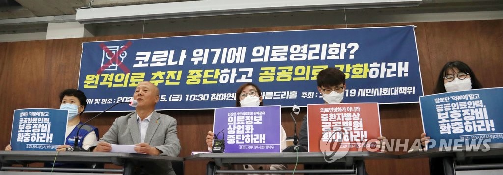 시민사회단체는 정부가 일시적 방역 성공에 취해 의료영리화와 규제완화를 추진하는 것을 매우 우려해왔다. 그런데 재확산 우려가 커지며 방역성공조차도 자신할 수 없는 이 시기에조차 원격의료와 의료영리화를 추진하겠다고 나서는 정부의 방향은 잘못되어도 크게 잘못되었다. 지금은 보건의료 예산과 자원, 행정력을 다해 시민의 생명을 지킬 공공보건의료 강화 정책을 시급히 내놓아도 부족할 시기다. 우리는 스스로의 생명과 안전을 위해 요구할 수밖에 없다. 돈벌이 의료영리화가 아니라 생명을 살릴 공공의료를 강화하라! 정부는 당장 이 요구에 응답해야 한다.