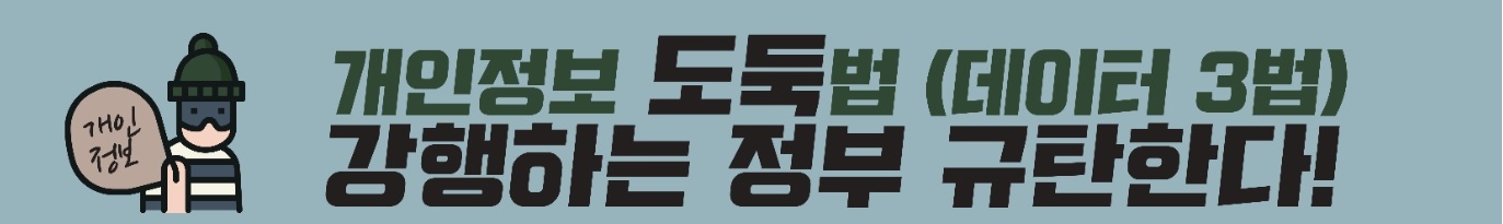8월 5일, 새로운 개인정보 보호법이 시행됩니다. 이름과 달리 개인정보에 대한 약탈을 허용하는 법입니다. 아무리 ‘데이터 3법’이란 미명으로 치장해도 그 데이터가 우리의 개인정보임은 변함이 없습니다. 개인정보 도둑법 입법 과정에서 시민사회는 이 법으로 인해 기업들 사이에 개인정보가 판매, 공유, 결합될 것에 대해 우려한 바 있습니다. 시행령 제정 과정은 이러한 시민사회의 우려가 기우가 아니었음을 확인해주었습니다.