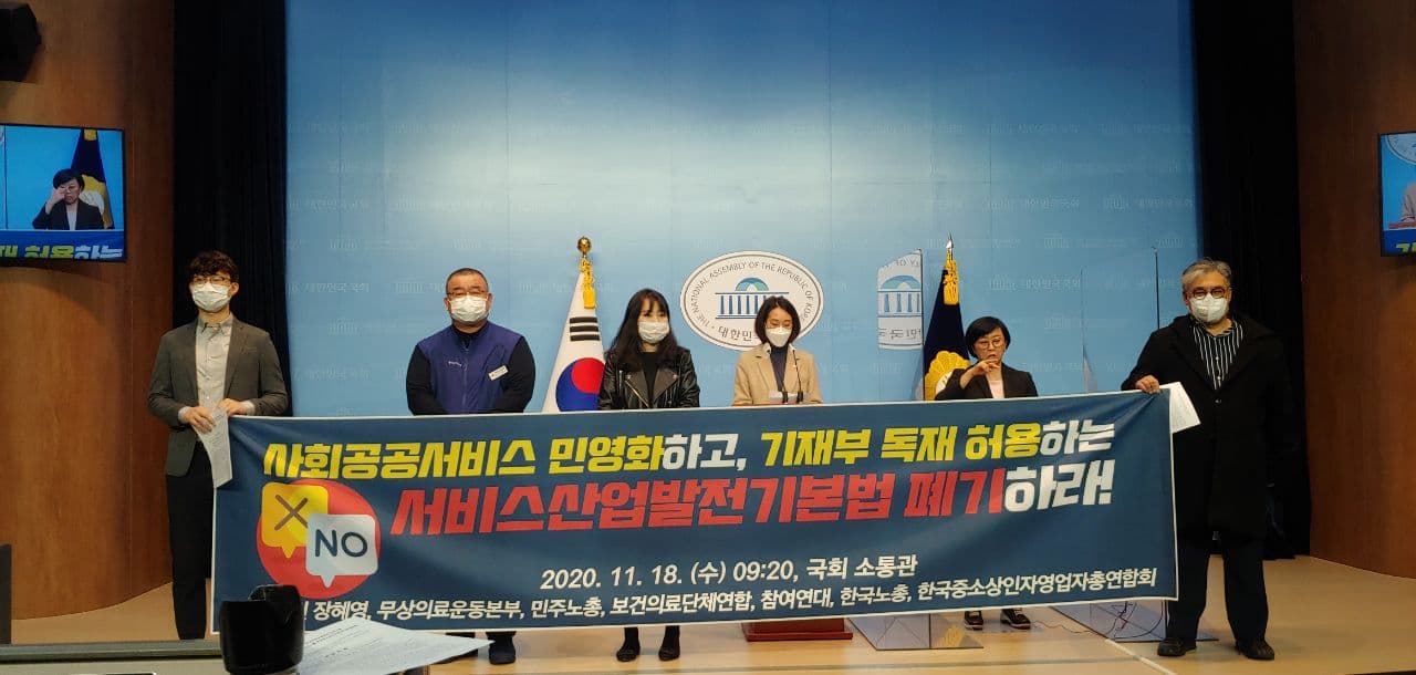 사회서비스발전기본법은 국민의 안전과 삶을 위협한다는 점에서 폐기가 마땅하다. 정부와 국회는 다가올지 모르는 감염병 겨울 대유행에 대비해 공공적 책무를 다해야 하며, 서비스산업발전기본법 제정으로 공공 영역을 시장에 내맡기려는 행태는 당장 멈춰야 한다.