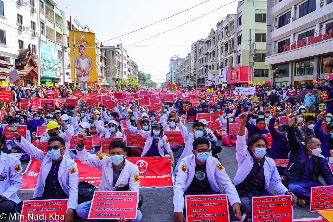 미얀마 군부는 의료인, 간호대생, 의대생들을 연행하고 있으며 심지어는 부상자를 치료하는 의료인들과 앰뷸런스를 공격하는 일도 서슴지 않고 있다. 끝내 지난 14일에는 양곤대 의과대학 1학년 칸 네이 하잉(Khant Nya Hein)이 군부에 의해 희생되었다. 그의 시신에 놓인 청진기를 우리도 보았으며 그의 어머니와 학우들의 눈물에 우리도 함께 한다.