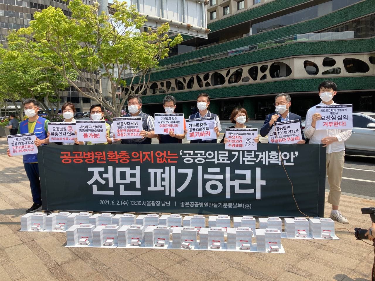 우리는 정부가 내놓은 ‘공공의료 기본계획안’이 코로나19 속 공공의료 부족으로 한국사회가 겪은 위기와 비극, 그리고 계속될 감염병 시대에 비추어 극히 부족한 수준이라고 생각한다. 이런 형편없는 계획이 향후 5년의 공공의료 계획으로 확정된다면 수많은 시민들의 건강과 생명이 위태로울 수밖에 없는 현실은 계속될 것이다. 노동시민사회단체들은 정부가 이 기본계획안을 폐기하고 완전히 새롭게 다시 발표할 것을 요구한다.