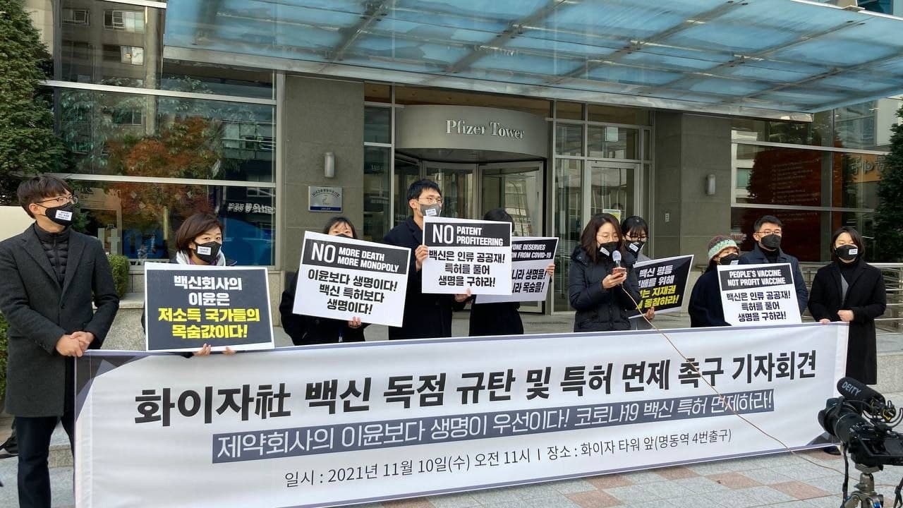 우리는 이처럼 사람을 살릴 인류 공통의 과학적 성과물이 존재하는데도 이를 소수가 독점하면서 수많은 생명이 쓰러지는 것을 목격하고 있다. 그리고 화이자로 대표되는 거대 제약사의 탐욕과 지재권 체제가 그 원인이라는 것을 많은 사람들이 깨닫고 있다. 한국의 시민사회단체는 이런 부조리와 부정의를 더 이상 지켜보지 않겠다는 전 세계적 운동에 함께할 것이며, 이를 위해 한국 정부가 다음의 조치를 취할 것을 촉구한다.