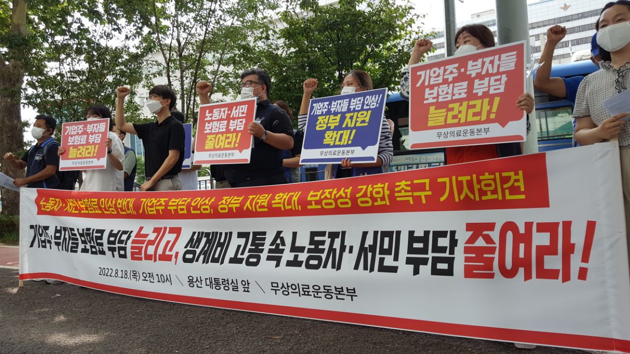 저희가 오늘 기자회견을 하는 이유는 이들의 뻔뻔한 주장을 반박하기 위해서입니다. 정부는 책임을 다하지 않고, 막대한 부를 쌓아둔 기업들이 보험료를 제대로 내지 않는 게 문제입니다.