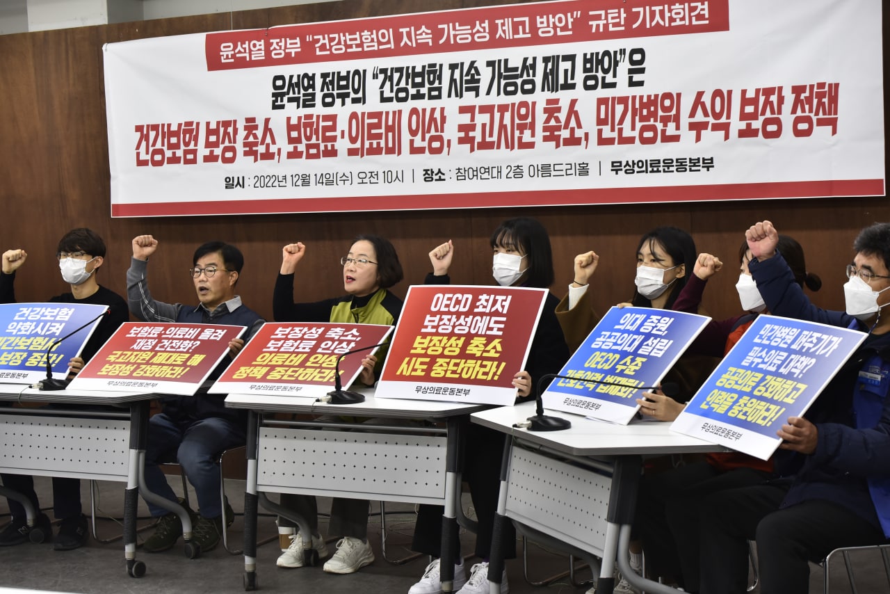 고물가·고금리에 서민들의 실질소득이 감소하고 삶이 더욱 팍팍해지는 지금 의료비를 올려 그나마 존재하는 건강보험 제도마저 약화시키고 민영의료보험 시장을 활성화하려는 윤석열 정부를 규탄하지 않을 수 없다. 국민의 삶과 건강과 생명에 관심 없다는 정부는 필요 없다. 이번 발표가 철회되지 않으면 시민들의 분노가 타오를 것임을 명심해야 한다.