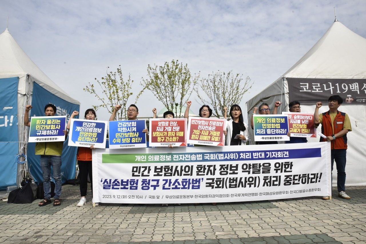 윤석열 정부 지난 1년 5개월간 건강보험 재정을 이유로 보장성이 축소되고 비대면 진료를 통한 영리플랫폼 기업의 진출 및 민간을 통한 건강 지원 서비스 활성화 등 의료 민영화 정책이 계속되고 있다. 그런데 여당을 견제하고 국민을 보호해야 하는 민주당마저 민간보험 자본, 여당과 한통속이 되어 보험업법 개정안을 통과시켜 국민의 개인 건강정보를 민간 실손보험사에 팔아넘기는 의료 민영화 정책을 함께 추진하고 있다.