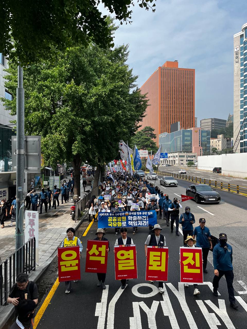 오늘 우리는 붕괴된 지역의료의 현실을 대통령에게 알려주기 위해 전국에서 이 자리에 모였다. 정부는 지역의료, 필수의료를 해결하겠다며 의료대란을 자초했다. 그러나 이 의료공백속에 더욱 소외되고 있는 의료취약지역 주민들의 목소리를 정부는 듣지 않는다. 이에 우리가 직접 목소리를 들려주기 위한 행진에 나선다.