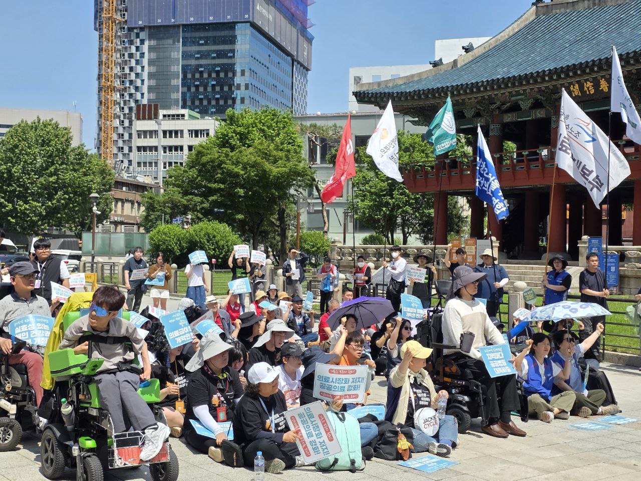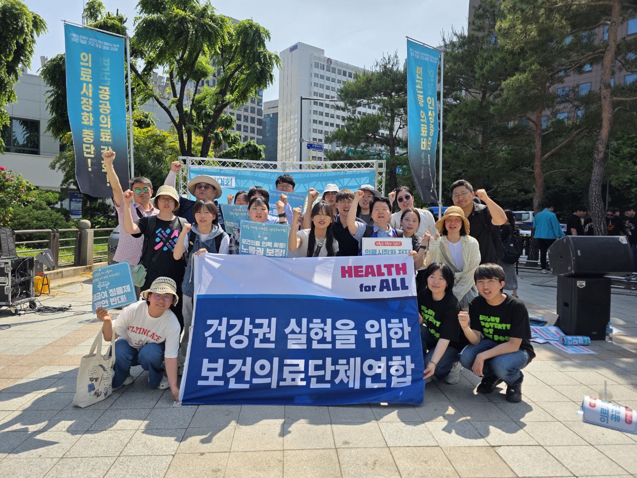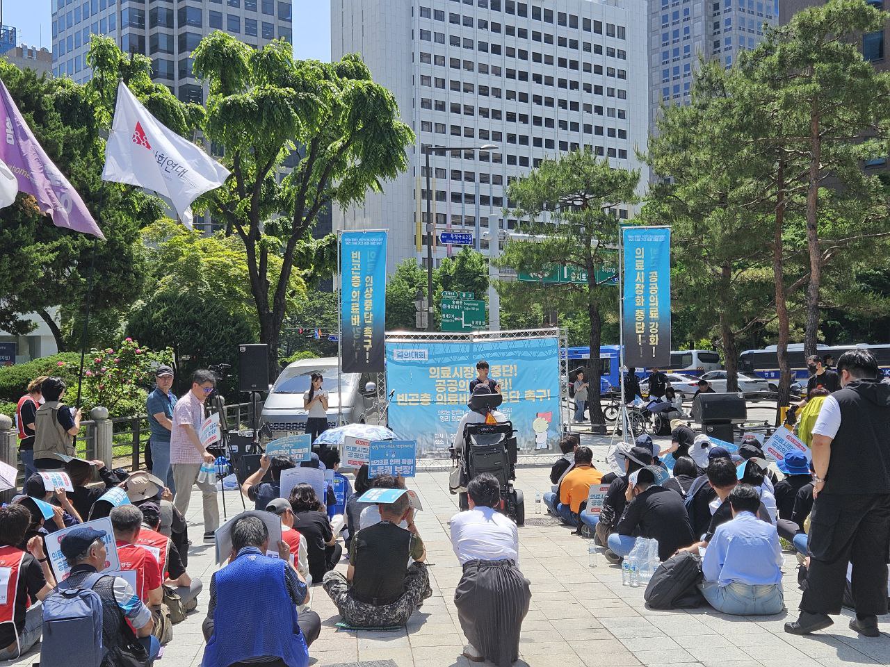 오늘 이 자리에 함께 모인 우리는 극도로 썩어빠진 한국의 시장화된 의료시스템에서 고통받는 사람들이다. 의료급여 수급권자, 홈리스, 장애인, 이주민, 보건의료 노동자, 그리고 공공병원이 없는 지역주민들은 돈벌이에 매몰된 냉혹한 의료체계에서 기본적 권리를 유린당하고 있다.