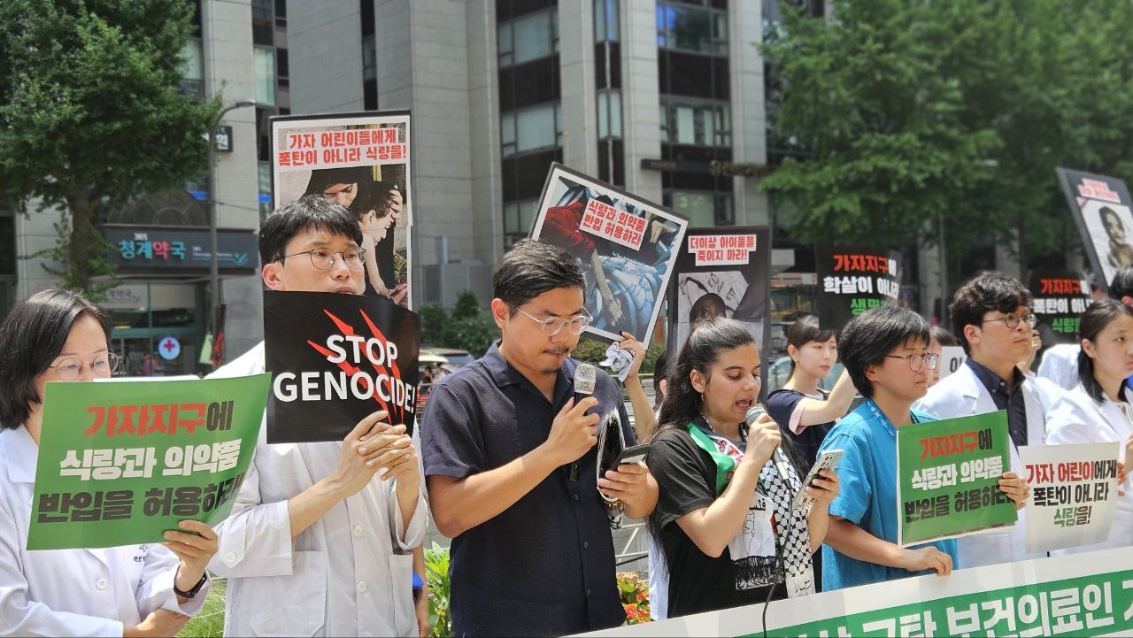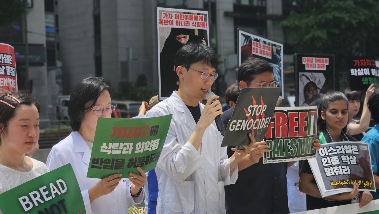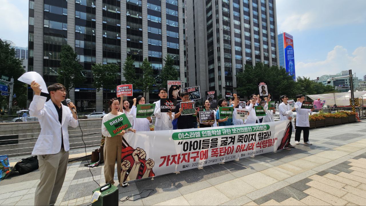 우리는 오늘, 보건의료인의 이름으로, 그리고 인간의 존엄을 수호하는 책임 있는 시민으로서 이 자리에 섰습니다. 지금 이 시간에도 팔레스타인 가자 지구에서는 의료인이 살해당하고, 병원이 폭격당하며, 굶주린 이들이 식량 배급소로 유인되어 학살당하고 있습니다. 21세기, 참혹한 광경을 영상으로 목격하면서도 국제사회는 침묵하고 있습니다.