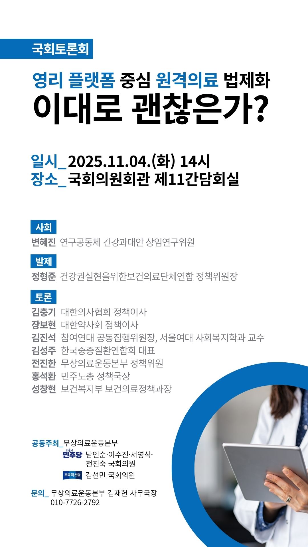 첨부파일 : 웹자보(원격의료)1080_1920 영리플랫폼_중심_원격의료_법제화_이대로_괜찮은가_자료집