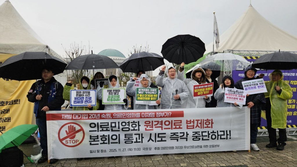 우리는 민주당 정부에서, 그것도 내란 이후 새로운 사회를 약속하며 당선된 이재명 정부가 가장 심각한 의료 민영화법 중 하나인 원격의료를 속전속결로 통과시키려는 것을 참담한 심정으로 강력히 규탄한다.