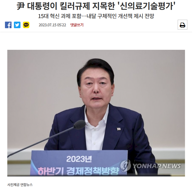 오늘 정부의 보도자료에 따르면 “새로운 의료기술은 안전성, 유효성을 검증받아야 의료 현장 사용이 가능하다”. 그러나 “의료기기 산업 활성화”를 위해 안전성, 유효성 검증을 유예(무시)한다는 것이 이 제도다. 그동안에도 신의료기술평가가 식약처 허가와 ‘중복 규제’라는 의료기기 업계의 생떼를 수용해, 이번 제도와 유사한 선진입 방식의 제도가 여러 차례 도입됐었다. 신의료기술평가 유예 제도(2015), 혁신의료기술평가 제도(2019), 혁신의료기기 통합심사·평가(2022)가 그것이다. 윤석열은 이마저도 만족하지 못해 ‘시장 즉시진입 의료기술’제도를 도입하려 한 것이다.