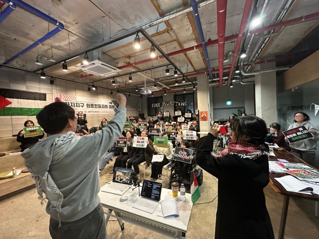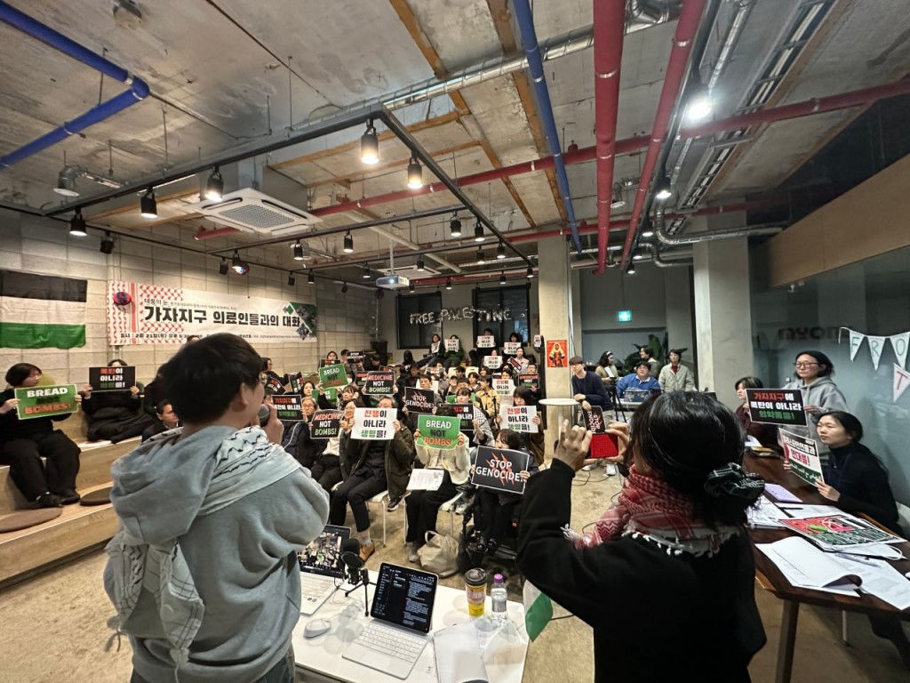 이날 행사는 이스라엘의 팔레스타인 학살이 무려 29개월째 계속되는 가운데, 폭격으로 폐허가 된 의료 현장에서도 생명을 구하고 의료체계를 재건하기 위해 분투하는 가자지구 보건의료인들의 이야기를 듣고 한국의 보건의료인들과 연대를 모색하는 자리였다.