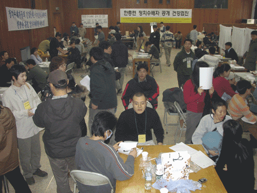 건약, 건치, 인의협, 청년한의사회, 보건의료노조 등으로 구성된 보건의료단체연합은 지난 3월 9일, 16일 두 차례에 걸쳐 한총련 ‘정치 수배자’ 공개 건강검진을 시행하였습니다.