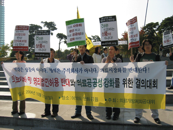 지금 한국 의료에 필요한 것은 병원의 영리병원화가 아니라 국민들의 치료접근권의 보장과 건강권에 대한 정부의 책임강화이다.