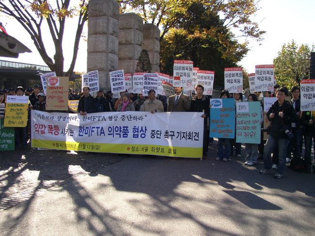 지금도 많은 사람들이 높은 약값 때문에 병원 앞에서 발걸음을 되돌린다. 건강보험재정의 낭비로 보험보장률은 50%를 넘지 못하고 있다. 그런데 별도협상을 가지면서까지 약값을 더 올리겠다는 것이 바로 한미 FTA이다. 이러한 상황에서 노무현 정부는 한미 FTA가 국민복리를 증진시킨다고 주장한다. 그러나 당장 한국의 핵심공공제도인 약가제도가 악화되는 협상, 약가폭등이 초래될 것이 분명한 한미 FTA 의약품협상을 별도협상까지 하는 이 상황에 국민복리는 어디 있단 말인가? 정부는 이제 거짓말을 그만두어야만 한다. 약가폭등과 의료비폭등을 초래할 뿐인 한미 FTA 의약품 협상, 그리고 한미 FTA 협상은 당장 중단되어야 한다.(끝)