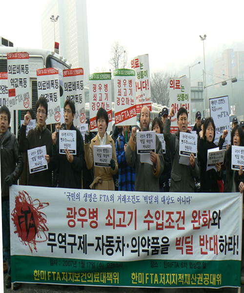 한미FTA저지 보건의료대책위 (건강권실현을위한보건의료단체연합 (건강사회를위한약사회 건강사회를위한치과의사회 노동건강연대 인도주의실천의사협의회 참의료실현청년한의사회) 건강세상네트워크 국민건강을위한수의사연대 기독청년의료인회 의료소비자시민연대 의료연대노조 전국보건의료산업노동조합 전국사회보험노동조합 참여연대 한미FTA저지 지적재산권공대위 (HIV/AIDS 인권나누리+ 공공의약센터 문화연대 진보네크워크센터 정보공유연대 함께하는시민행동)