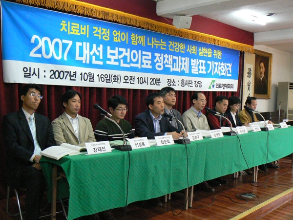 우리는 2007 대선시기에 아픈 것이 죄가 되는 현실을 넘어 모든 이들이 치료비 걱정 없이 양질의 의료서비스를 제공받고, 국민이 건강하게 살아가는 사회를 만들기 위한 모든 활동을 전개할 것이다.