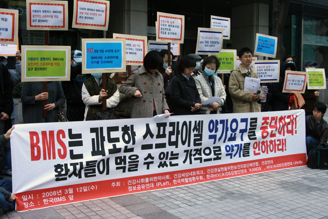 물론 BMS로 대표되는 다국적제약회사들이 협박하는 것이 단지 정부만은 아니다. 약값을 높게 쳐주지 않으면 더 이상 신약 개발을 하지 못하게 될 것이라며 아픈 환자들을 상대로 위협의 수위를 점점 높여가고 있다. 그러나 제약회사들이 환자들의 피 같은 돈을 착취해서 퍼붓는 곳은 생명을 살리는 신약을 개발하는 연구실이 아니다. 제약회사들이 만들어낸 약 중에서 이전 약보다 효과가 좋은 약은 단지 15%에 불과하고 나머지 85%는 이전 약과 비슷하거나 오히려 효과가 떨어지는 약들이다. 이처럼 쓸모없는 약들을 블록버스터로 만들기 위해 광고, 판촉에 수십조원을 쏟아붓고 그 돈을 환자들에게 달라고 요구하고 있는 것이다. BMS만 하더라도 마케팅에 쏟아부은 금액이 53억달러(5조원 가량)로 R&D 투자비용 23억달러(2조억 가량)에 비해 2배가 넘는다 (2002년기준).
