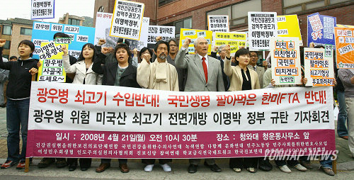우리는 미국 축산업자들조차도 광우병 위험이 높다고 스스로 인정한 30개월령 이상의 쇠고기까지 수입해주기로 양보한 이명박 정부는 정부로서의 자격이 없다고 단언한다. 이명박 정부는 미국 축산업자의 이익을 위해, 그리고 한미 FTA를 위해, 국민의 생명을 포기하는 ‘광우병 프렌들리 정부’일 뿐이다. 당장 한미 FTA 추진을 중단하고 미국산 쇠고기 수입전면개방을 전면무효화하라. 이명박 정부는 우리 국민의 건강과 안전을 지키기 위해서는 미국산 쇠고기의 수입을 중단하는 것만이 유일한 길임이라는 깨달아야 한다. 미국산 쇠고기의 전면 수입은 필연코 가까운 장래에 광우병 대재앙을 몰고 올 것 분명하다. 이제는 광우병 대재앙을 막아내기 위해 국민들이 나설 것이다.