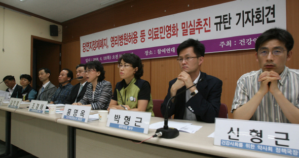 우리는 87년 6월 항쟁으로 얻은 우리사회의 최대의 민주적 성과물의 하나인 건강보험이 붕괴되는 것을 그대로 두고 보지 않을 것이다. 우리는 이명박 정부가 꼼수와 사기로 추진하는 제주도부터 시작되는 의료민영화정책을 당장 중단할 것을 강력히 촉구한다. 또한, 의료민영화를 법제화를 목적으로 추진하는 의료법 개정을 당장 중지하라. 이명박 정부의 의료민영화 정책은 미국산 쇠고기 수입전면개방과 마찬가지로 국민의 건강과 생명을 직접적으로 위협하는 정책이다. 이미 백만의 촛불로 국민이 반대하고 있음이 분명해진 의료민영화는 광우병 쇠고기 수입 정책과 마찬가지로 국민의 뜻에 정면으로 반한다. 이명박 정부는 당장 의료민영화를 중단하라. 의료민영화정책을 계속 추진한다면 이명박 정부는 더 이상 정부자격이 없다.(끝)