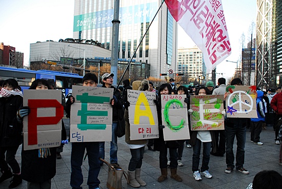 4. 한국을 비롯해 평화와 정의를 사랑하는 세계 모든 시민 여러분들에게 바랍니다. 우리는 지난 2008년 12월27일 이스라엘이 가자지구에 대한 학살을 시작하자마자 중동 및 아시아, 아메리카, 유럽, 아프리카 등 세계 각지에서 신속하고 적극적으로 이스라엘의 학살 중단을 요구하는 행동에 나섰습니다. 우리의 행동은 이스라엘을 압박하였고 세계의 양심이 살아 있음을 다시 한 번 보여 주었습니다. 포기하지도 말고 지치지도 말고 우리의 행동을 이어갑시다. 우리 모두 평화롭고 정의로운 세계를 향해 뚜벅뚜벅 걸어갑시다.